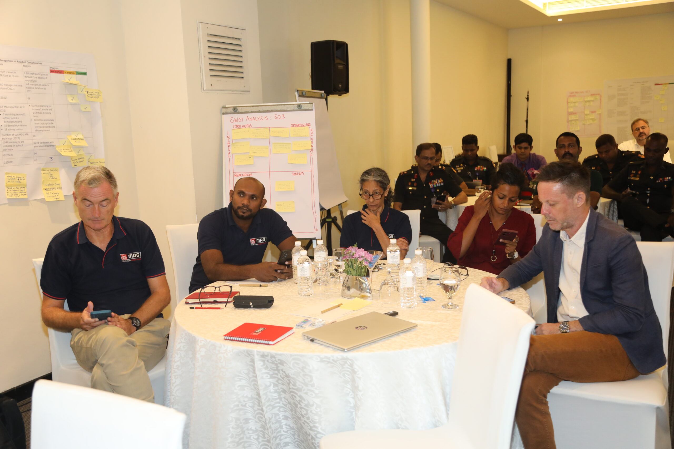 Participants: Country directors, programme and operations managers from implementing partners (DASH, SHARP, MAG, HALO), SLA HDU, Sri Lanka Campaign to Ban Landmines  (SLCBL), and key government ministries including Defence, Foreign Affairs, Education, Environment, Health, Rural development  and Social Security and Empowerment, Wildlife, and Finance & Planning.